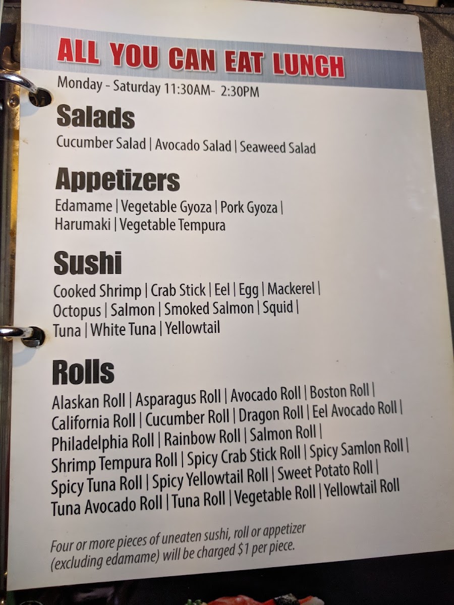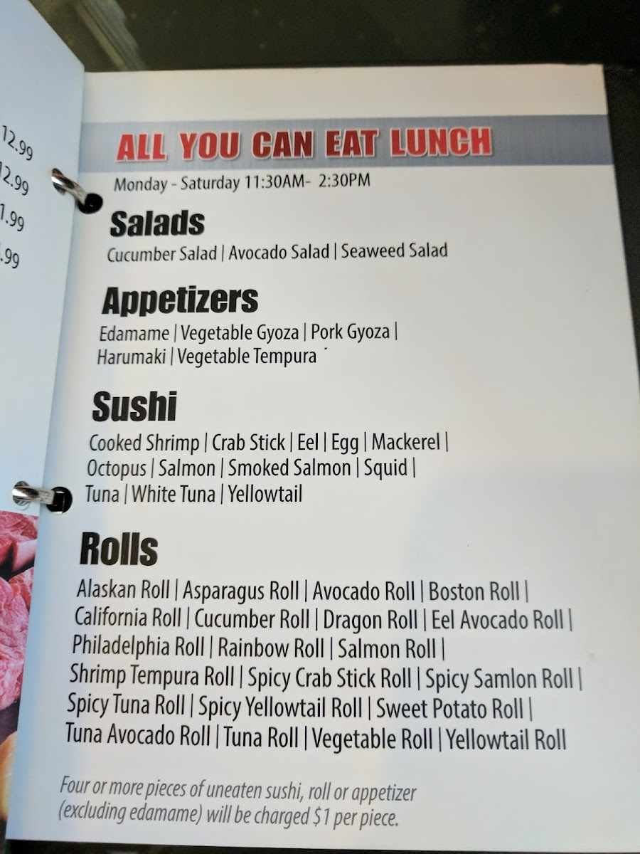 Guests can enjoy flavorful hibachi combinations like tender filet and chicken cooked right at the table, alongside sushi delights such as the Spicy Tuna Roll or the inventive Godzilla Roll. Appetizers like King Crab Rangoon and sides including miso soup or hibachi vegetables complement the experience, creating a balanced meal that matches the inviting, interactive atmosphere of the restaurant.